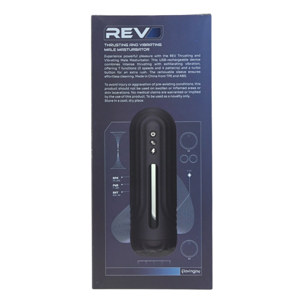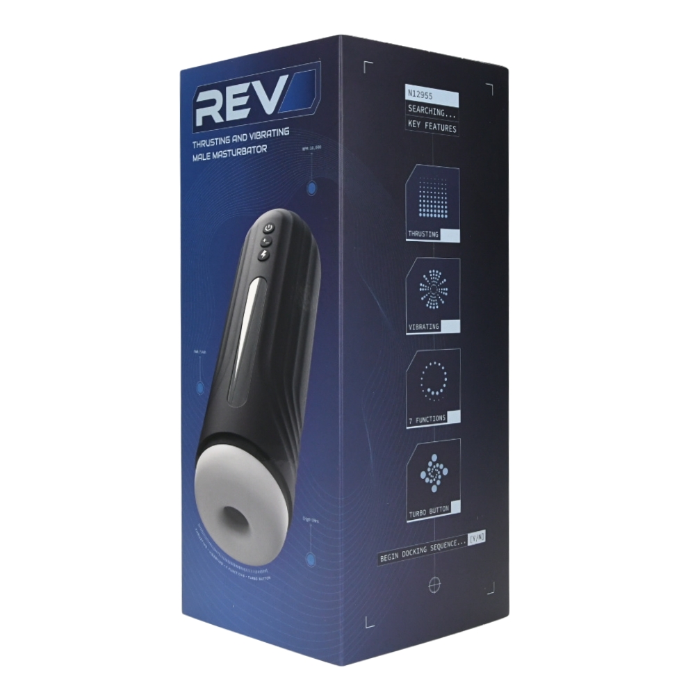 Take your solo play to a whole new level with the Rev Thrusting and Vibrating Male Masturbator, a high-performance device engineered for deep, rhythmic satisfaction. Combining powerful internal vibrations with an intense thrusting motion, this masturbator is designed to give you an extremely satisfying experience. Whether you are looking for a slow, steady build-up or a fast-paced finish, the Rev delivers a versatile experience tailored to your exact needs. Navigating your pleasure is seamless thanks to the intuitive control system. With 7 distinct functions—featuring 3 speeds and 4 unique patterns—you can explore a wide range of sensations at the touch of a button. For those moments when you want to push the intensity to the limit, the dedicated Turbo button provides an instant boost in speed, ensuring you reach your peak exactly when you want to. Crafted from premium, skin-safe TPE and durable ABS, the device features a textured internal sleeve that provides incredible grip and stimulation. Maintenance is just as easy as use, the sleeve is completely removable for thorough cleaning, and the entire unit is USB rechargeable, so it is always ready for your next session. Product Features: