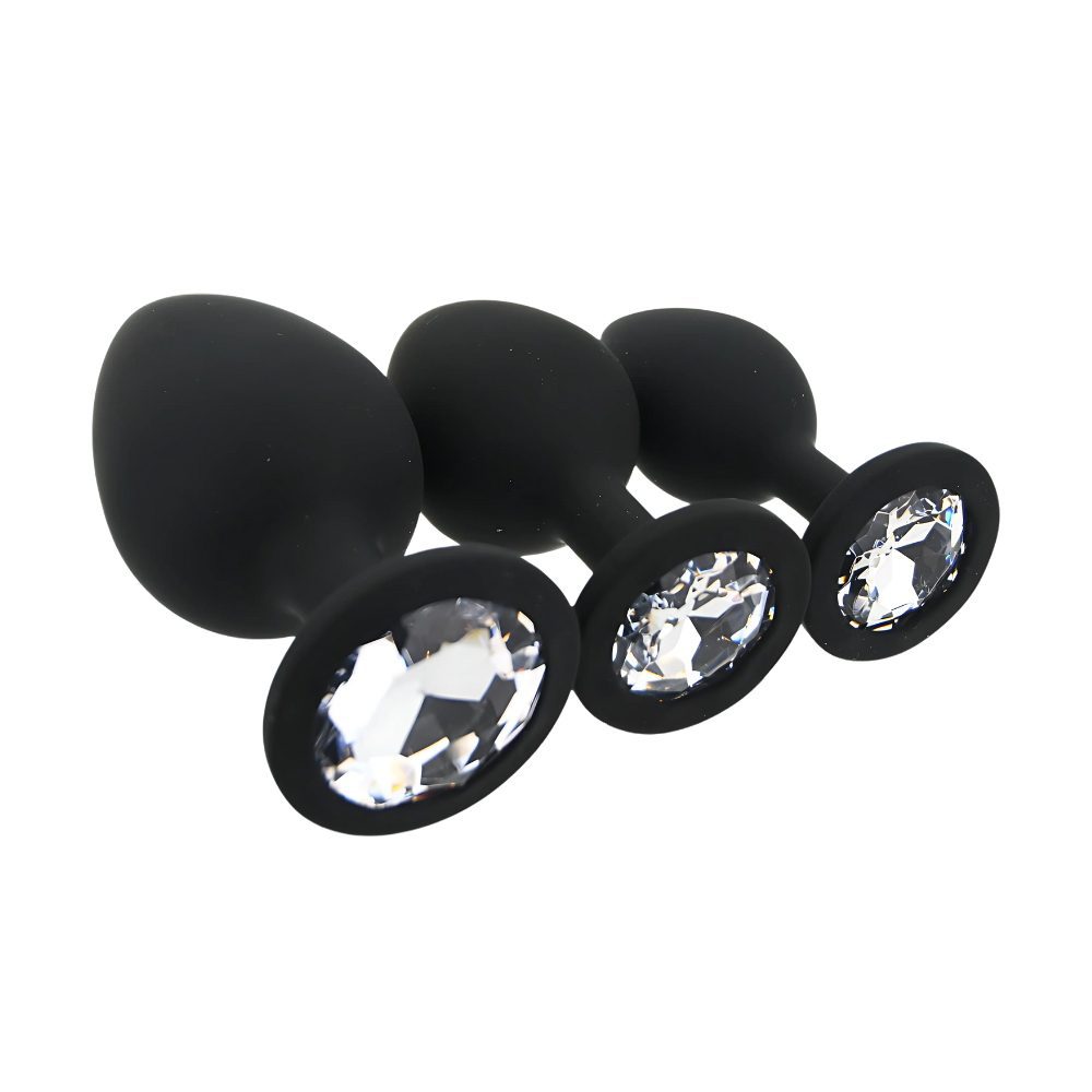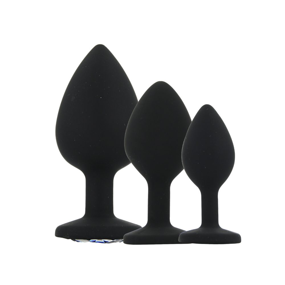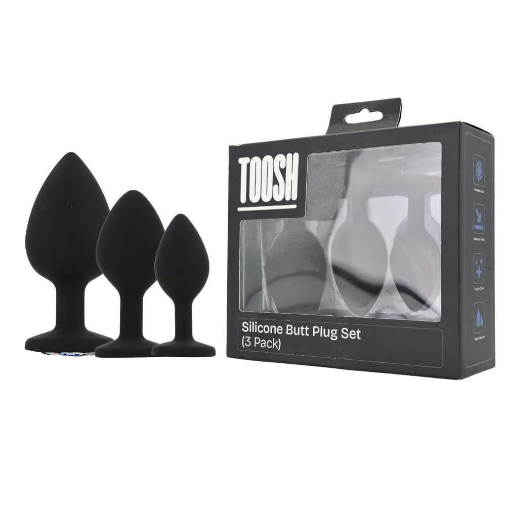 Upgrade your anal play with this Toosh butt plug set! Featuring three sizes for comfort and progression, each plug has a tapered tip, slim neck and flared base for safety. With a dazzling jewelled base, each beautifully crafted plug has a seamless finish for a smooth and comfortable experience. Easy to clean and for best results, always use with anal lubricant. Plug Sizes: